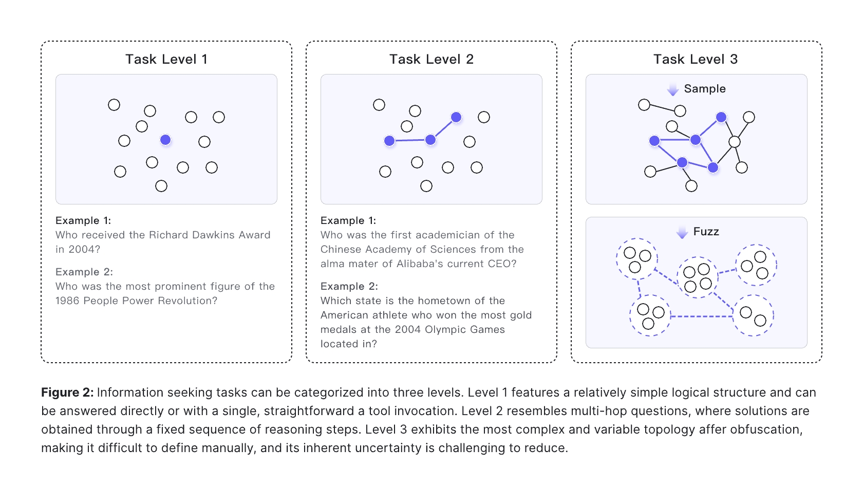 形式化模型的核心理念在于使问答(QA)的难度可控化。QA 的基本构成是一个实体集合,而难度的基本单元则是针对这些实体之间的关系进行操作。每增加一次操作,便意味着将 QA 的难度提升一个层级。例如,可以通过对具有相同属性的实体进行合并或模糊化等原子级操作,逐步增加问题的复杂度。
