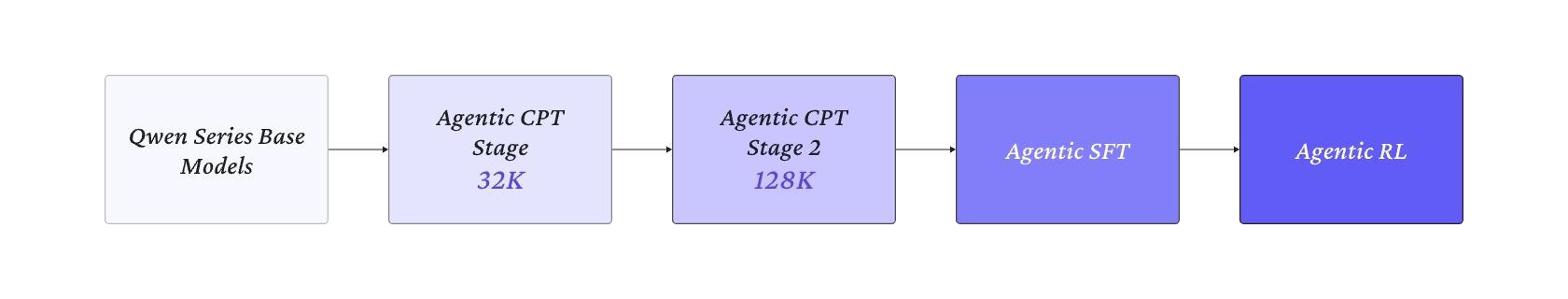我们对 Agent model 训练流程进行革新!从 Agentic CPT 到 SFT 再到 Agentic RL,打通整个链路,引领新时代下 Agent model 训练的新范式。