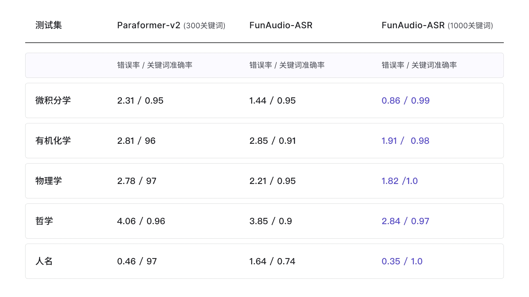 FunAudio-ASR-nano 为轻量化版本,在保持较高识别准确率的同时,具备更低的推理成本,适合对资源敏感的部署环境。