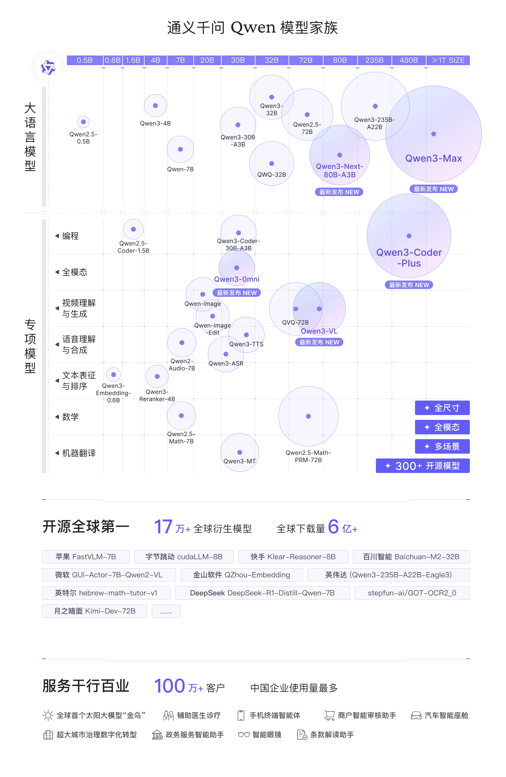 · 多模态模型:2025年3月,通义千问发布全模态大模型Qwen2.5-Omni,2025年9月发布原生端到端多语种全模态大模型Qwen3-Omni。