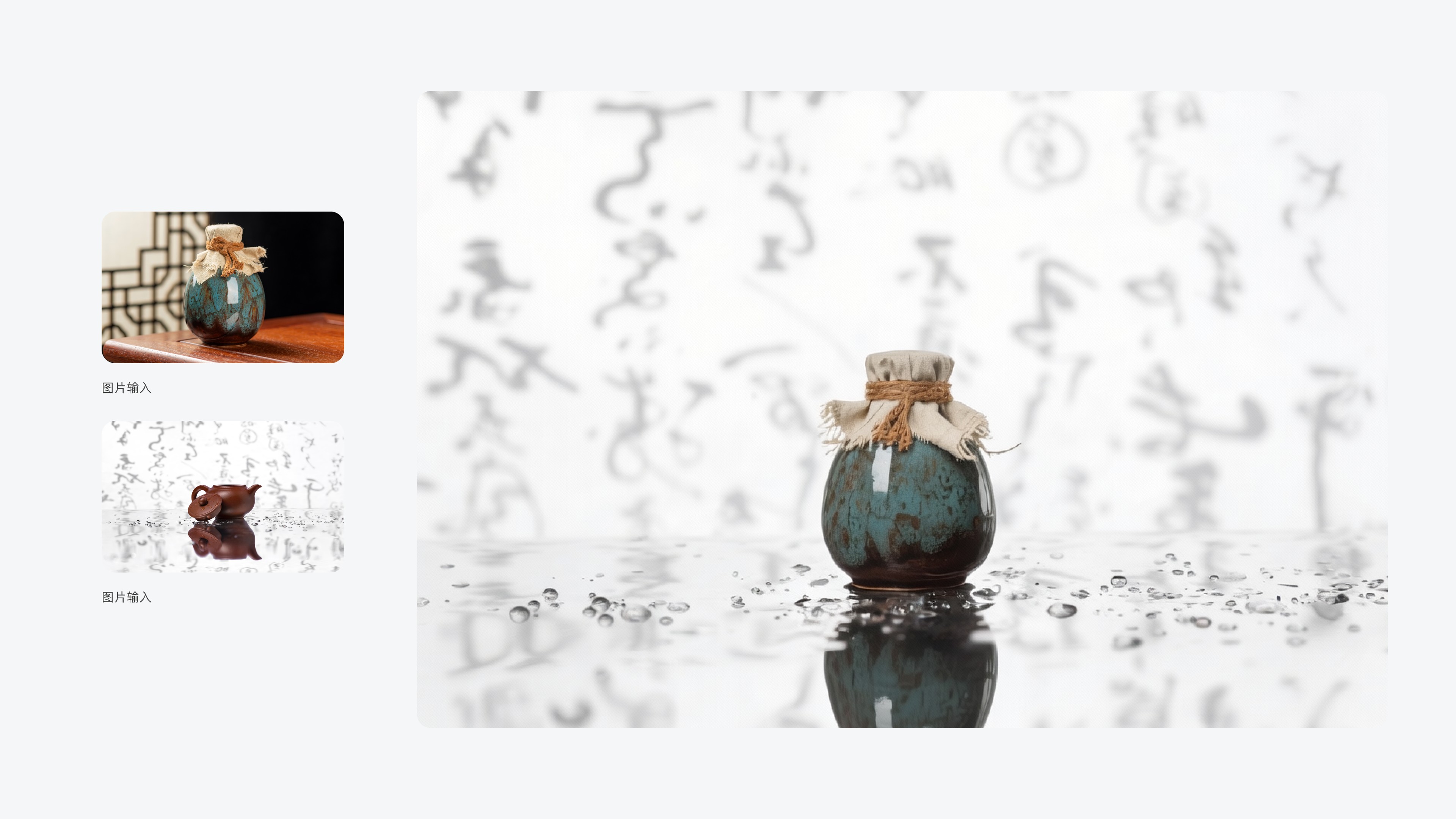 提示词:将图1中的茶壶替换成成图2中的瓶子